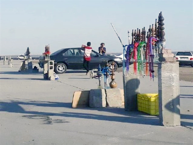 در مسیر میان ولایت تا سرو، صدها بساط موقتی به چشم میخورد که با پهنکردن قالیچه یا چادر، انواع قلیان، نوشیدنی و خوراکی به مراجعهکنندگان ارائه میدهند. این بساطها که اغلب فاقد مجوز رسمی هستند، چهرهی ساحل را به شکل چشمگیری تغییر دادهاند.