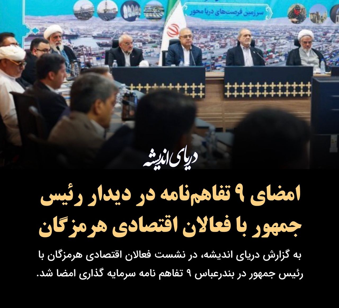 امضای ۹ تفاهم نامه در دیدار رئیس جمهور با فعالان اقتصادی هرمزگان مهر ۱۰, ۱۴۰۴